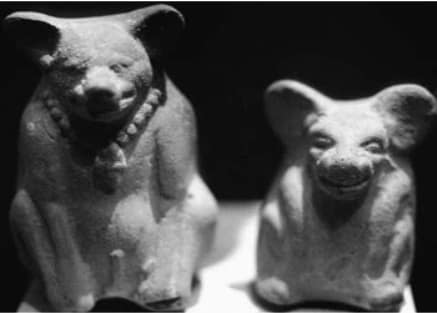 Image: Late Classic period Maya figurines portraying dogs probably fattened on maize. Source