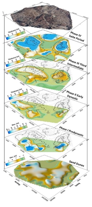 The archaeological site of Buto, located in the flood prone northwestern Nile Delta, comprises three prominent mounds known as Koms A, B, and C, with Kom C selected for detailed investigation due to its complex occupational history spanning the Predynastic period through the Early Islamic era. Successive layers of mudbrick architecture, cultural debris, and alluvial sediments have accumulated over millennia, complicated by Nile branch shifts, seasonal flooding, and later Ptolemaic and Roman disturbances that scattered materials across the upper horizons.